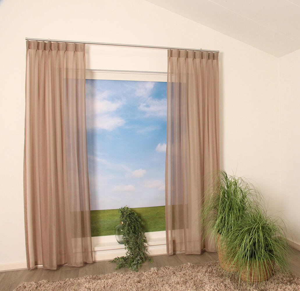 Borja is kamerhoog, wat betekent dat deze gordijnen naadloos kunnen worden geconfectioneerd voor een luxe en elegante uitstraling.