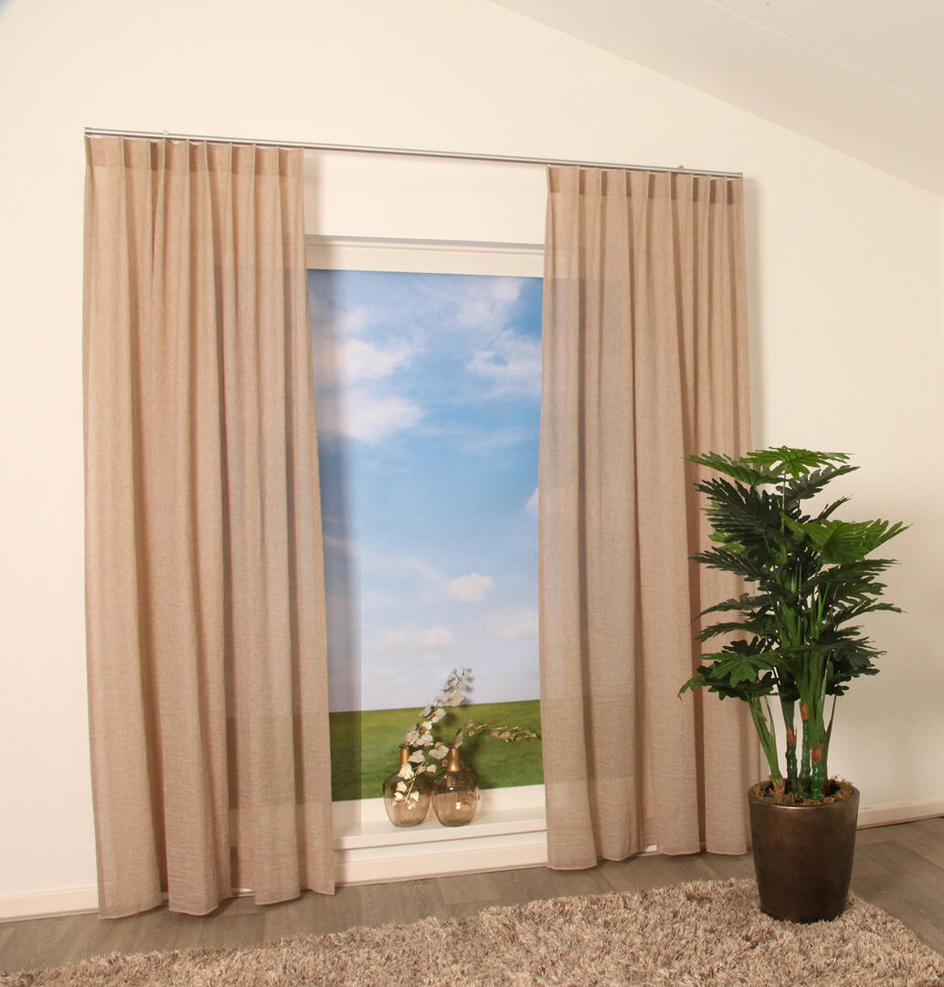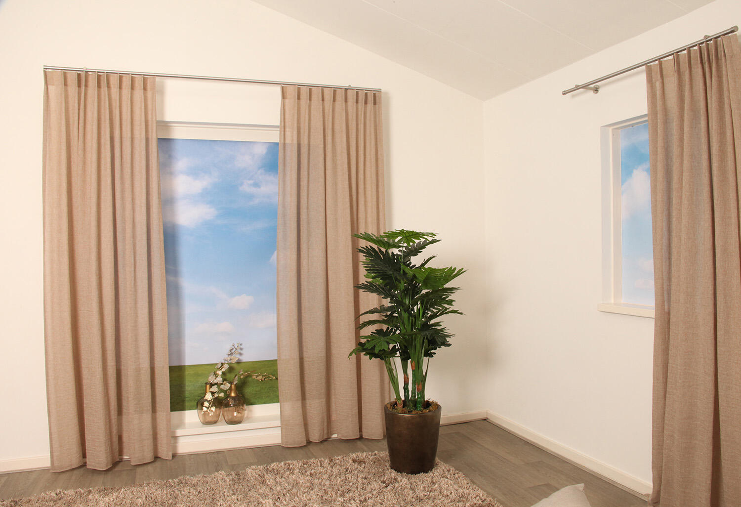 Inbetween Braine is een kamerhoge stof, wat betekent dat deze gordijnen naadloos kunnen worden geconfectioneerd voor een luxe en elegante uitstraling.