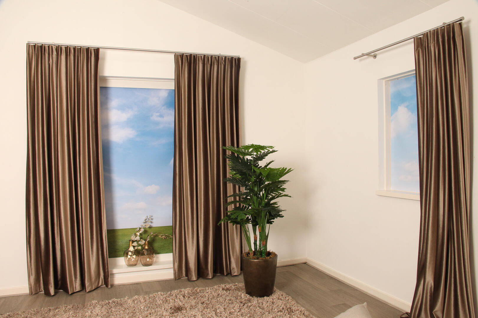Door de kamerhoge stof kan het gordijn naadloos worden geconfectioneerd, wat zorgt voor een elegante en gestroomlijnde uitstraling zonder storende naden. De stof voelt zacht en soepel aan, waardoor het gordijn prachtig valt en mooi in de plooi komt.