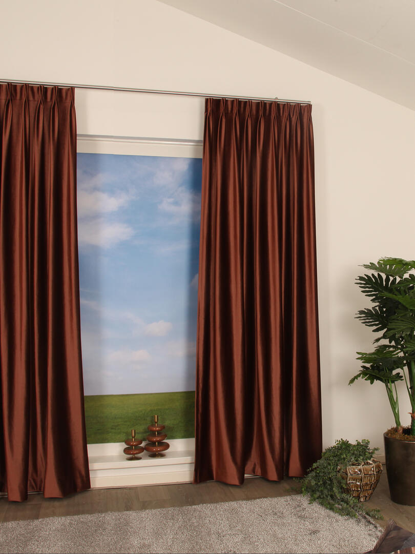 Door de kamerhoge stof kan het gordijn naadloos worden geconfectioneerd, wat zorgt voor een elegante en gestroomlijnde uitstraling zonder storende naden. De stof voelt zacht en soepel aan, waardoor het gordijn prachtig valt en mooi in de plooi komt.