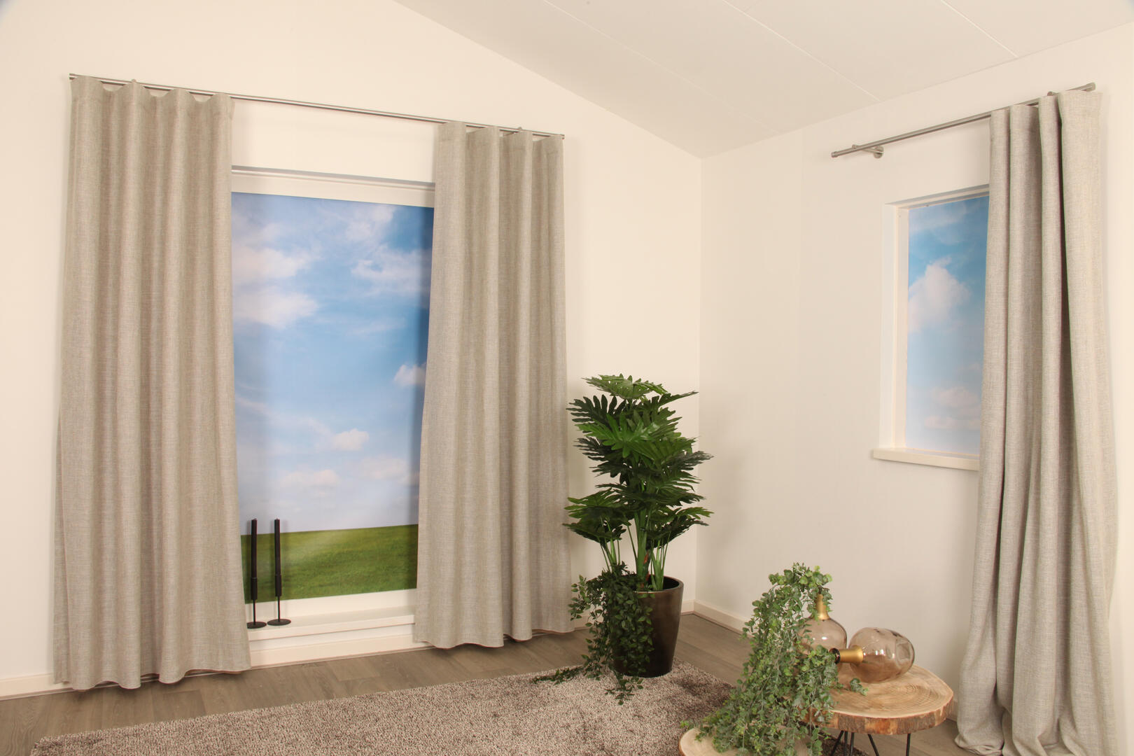 Doordat de stof kamerhoog is kan deze naadloos gemaakt worden en wordt standaard met een loodveter geleverd waardoor deze mooi valt.