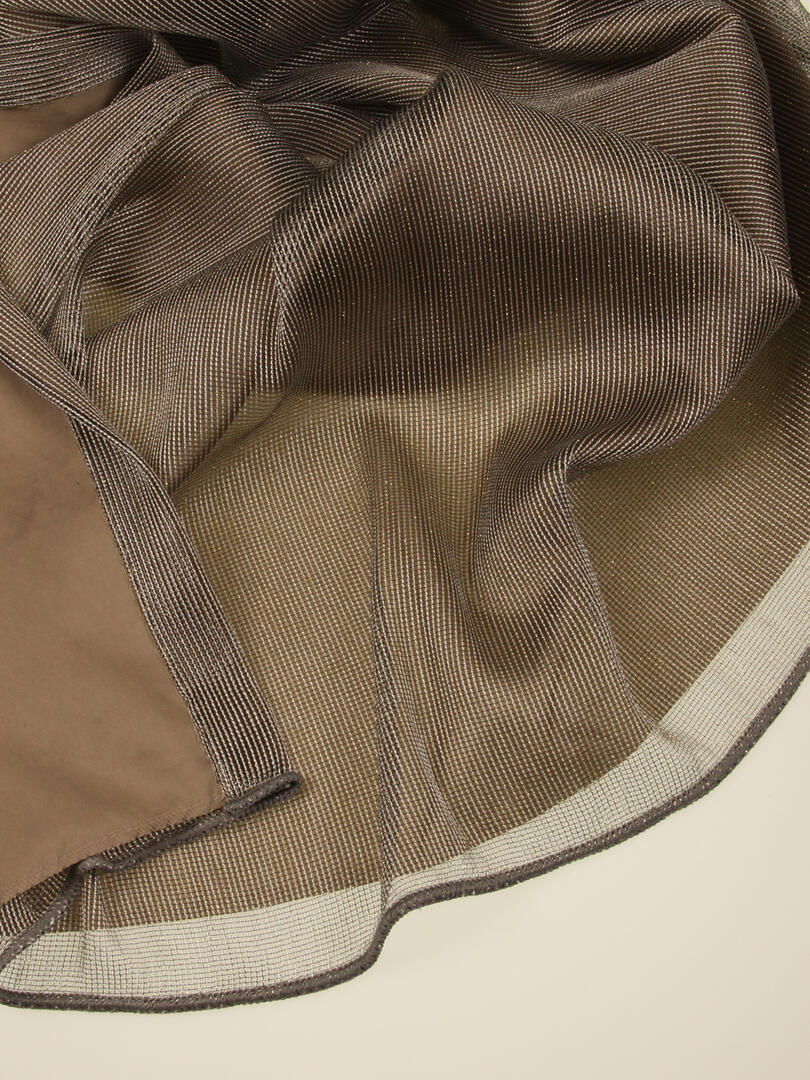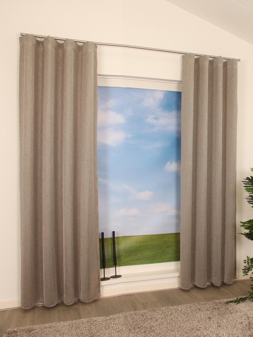 Deze stof is kamerhoog, wat betekent dat deze gordijnen naadloos kunnen worden geconfectioneerd voor een luxe en elegante uitstraling. Het ontbreken van naden zorgt voor een strak, uniforme look die je ruimte optisch vergroot en het licht op een mooie manier filtert. Deze kamerhoge afwerking biedt niet alleen esthetische voordelen, maar zorgt ook voor een betere lichtwering en een verbeterde geluidsisolatie, waardoor je huis een gevoel van sereniteit en rust uitstraalt. De onderzijde van de stof wordt zorgvuldig afgewerkt met een loodveter, wat niet alleen zorgt voor een nette afwerking, maar ook bijdraagt aan de duurzaamheid en de lange levensduur van de gordijnen.